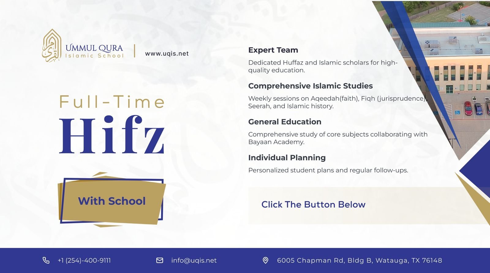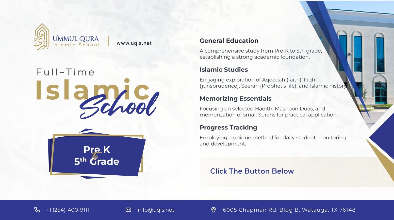 Ummul Qura Islamic School, established in 2023 in Watauga, Texas, is diligently working with a dedicated and passionate team to become the best Islamic school in Texas, USA. Our vision is to cultivate an educated and devout community, committed to creating a better world anchored in true servitude to Allah. As an Islamic education center.